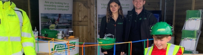 A video of the Denbighshire-based Clocaenog Wind Farm, on which Jones Bros was the principal contractor, was played at the company’s stand, which also provided youngsters a chance to construct items out of straws and try on hard hats and hi-vis jackets.